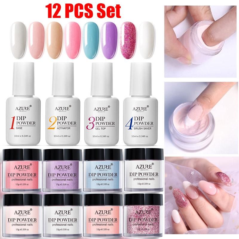 Azure Beauty 14pcs Lot Full Set Dipping Powder Base Top Coat Kits Diy Dip Nail Powder Manicure Set Brush Saver Powder Nail Glitter Aliexpress